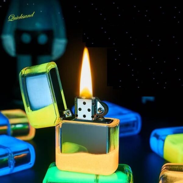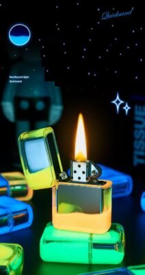 Encendedor transparente con efecto fluorescente – Estilo moderno con estuche de regalo